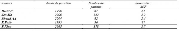 Notre patient est de sexe masculin. Bien que notre observation se rapporte au cas d’un seul patient, il convient de rappeler la constance de ce fait dans la littérature où il est rapporté par la plus part des auteurs une prédominance masculine dans les séries de cas d’abcès du cerveau (Tableau I).