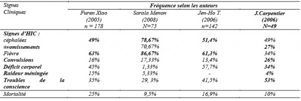 Malgré tout, à travers la littérature, le pronostic des abcès microbiens du cerveau reste marqué par une lourde mortalité allant de 10 à 25% (Tableau II) ; ce, en dépit d’un net progrès dans la prise en charge.