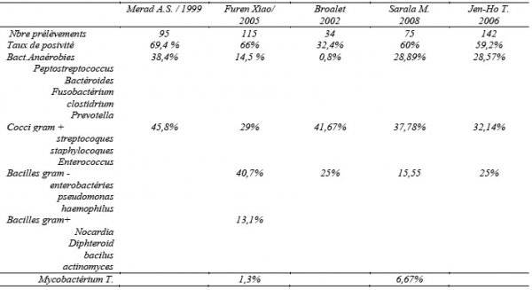 La difficulté même du diagnostic microbiologique est soulignée par la plupart des auteurs [14].
