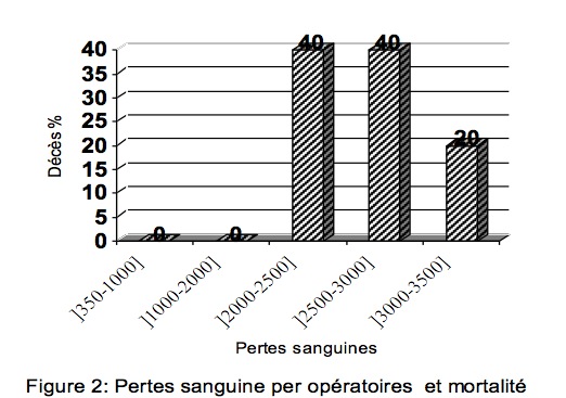 D’un autre côté, la persistance du saignement a été le facteur qui a le plus significativement été associé à la mortalité : en effet les patientes qui avaient une persistance du saignement à l’issue de l’acte chirurgical avaient 108 fois plus de risque de décéder et ce malgré le recours à la transfusion sanguine chez bon nombre d’entre elles. L’on pourrait déduire face à ce constat que, plus que la profondeur de l’anémie préopératoire, c’est plutôt l’efficacité du geste d’hémostase qui a joué un rôle fondamental dans le pronostic ainsi que l’importance de la spoliation sanguine peropératoire.