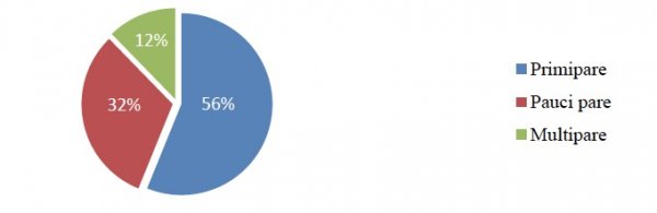 L’âge moyen des patientes était de 24,9 ± 5,4 ans (extrêmes:17 et 39). La parité moyenne était de deux pares (extrêmes : un et sept) ; les primipares représentaient 56% des patientes (Figure 1). Seulement 27,9% des patientes avaient été régulièrement suivies pendant leur grossesse.