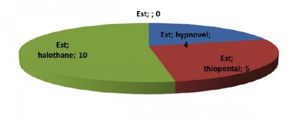 Nous avons utilisé deux hypnotiques au cours de ces anesthésies. ce sont essentiellement le Thiopental et l’hypnovel. (figure 4)
