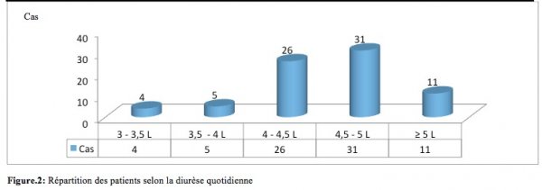 La diurèse moyenne journalière était de 5,4L/j ± 1,56 [3,7-8L/j] (figure 2).