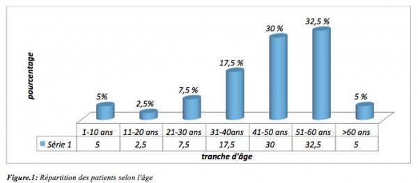 Au cours de la période d’étude de 84 mois, 1420 patients avaient été admis à l’unité de neuro-réanimation du service de neurochirurgie du CHU de Fann de Dakar. En cours d’hospitalisation 77 patients ont présenté un DIC, soit une incidence de 5,47%, et une fréquence annuelle de 11 cas / an. L’âge moyen de nos patients était de 43,37 ans ± 13,07 avec des extrêmes de 3 et 69 ans. (figure1).