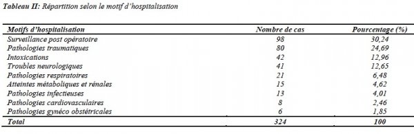 Le tableau II représente la répartition selon le motif d’hospitalisation