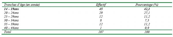 Nous avons colligé 107 dossiers de Pathologies obstétricales sur 2641 admissions en réanimation soit une fréquence de 5,2%. Sur un total de 6207 accouchements réalisés à l’hôpital, l’anesthésie réanimation a été impliquée dans la PEC de 2418 patientes césarisées. L’âge moyen était de 22,5 ±7,1 ans avec des extrêmes de 14 et de 44ans. La tranche d’âge de 14 à 19 ans était prédominante avec 42,1%. Les patientes étaient primipares à 59,8 % et Primigestes à 55,2 %. Les motifs d’admission en réanimation étaient dominés par les complications de la toxémie gravidique 46 ,80 % et les hémorragies obstétricales 19,69%. La durée moyenne d’hospitalisation était de 3,5 jours avec des extrêmes de 1 jour et de 22 jours et 86,92 % des patientes sortaient de réanimation sans séquelles. Quatorze patientes sont décédées soit un taux de létalité de 13,08 %.
