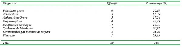 L’urgence non obstétricale sur grossesse ou dans le post-partum et le décès constaté à l’admission étaient nos critères de non inclusion.