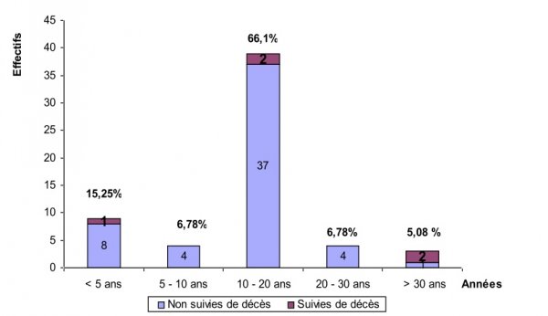 Cinquante-neuf (59) dossiers ont été colligés dans le service durant la période de l’étude. La répartition en fonction de l’âge de ces patients a été présentée sur la figure 1.