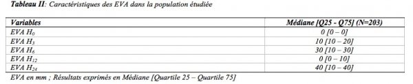 A H24, 93% des patientes du groupe « IV » avait un EVA inférieur à 30mm. Cette proportion était de 83% pour le groupe « IR » (OR=2.81 [1.03-7.90] ; p = 0.02).