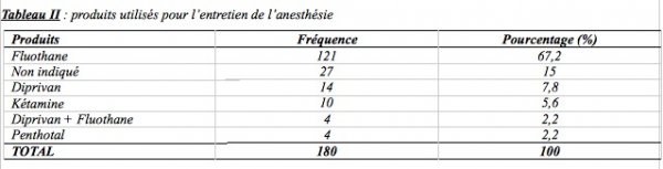 L’anesthésie a été réalisée par un infirmier anesthésiste diplômé d’état dans 97,8% des cas du fait du nombre insuffisant de médecins anesthésistes réanimateurs.