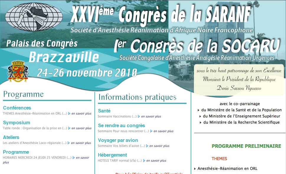 – Programme, inscription, soumission des résumés, contacts, etc sur le site du congrès www.brazza.saranf.net |
