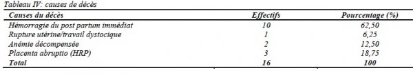 Les Hémorragies du post partum constituaient les principales causes de décès dans 62,5% des cas.