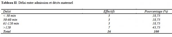 Le décès maternel est survenu dans 56,25% des cas avant 2 heures d’admission.